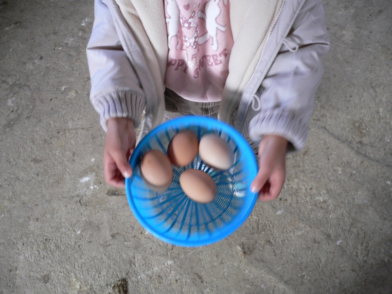 その代わり、にわとり小屋で卵をゲット、にわとりが放し飼いしされている小屋でしたが4歳