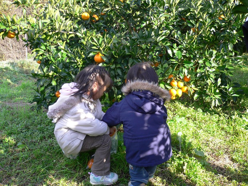 みかん園でみかんを取って、次はトマトかなっと思った頃、なんと空から白い物が!!w( ̄o ̄)w
